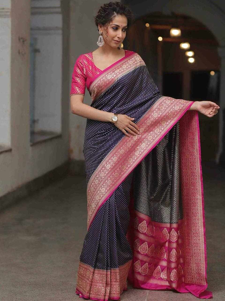 Design: Beautiful rich pallu with intricate jacquard work woven all over the saree, offering a graceful and luxurious look