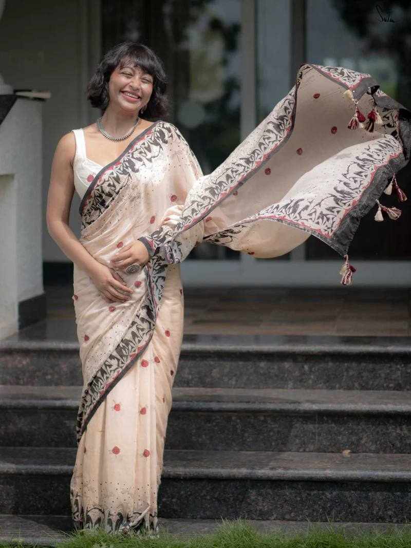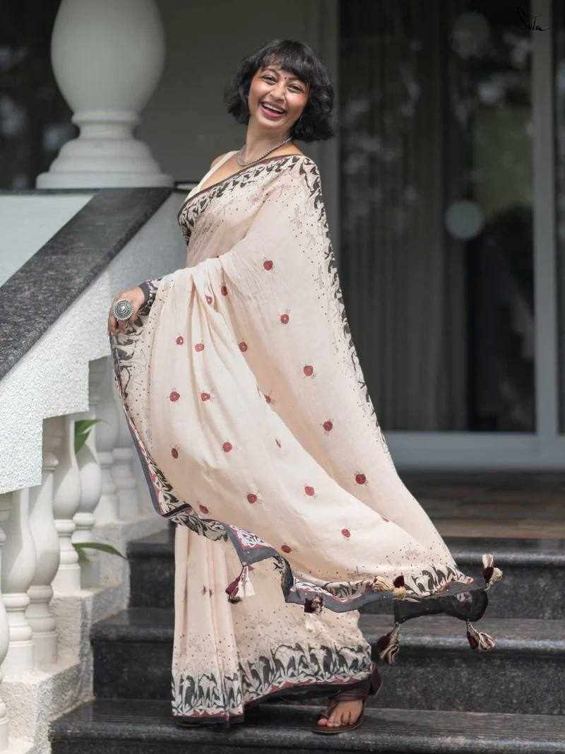 Saree Fabric: Premium Linen Cotton with beautiful digital print