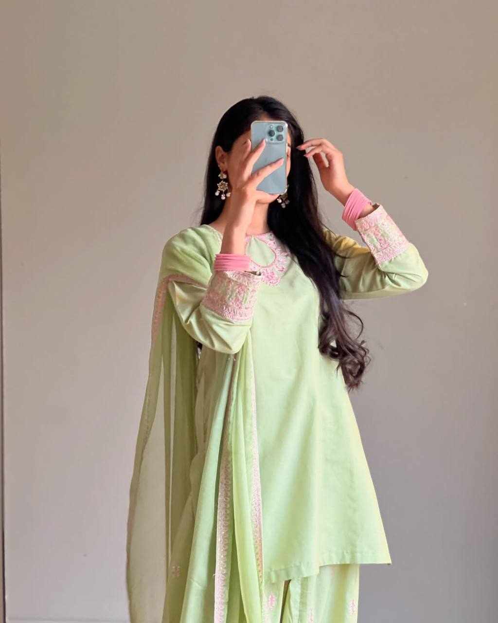 Fabric : Rayon Cotton Silk with Multi-Needle Work, Sequence Work, Embroidery Work, Zari Work