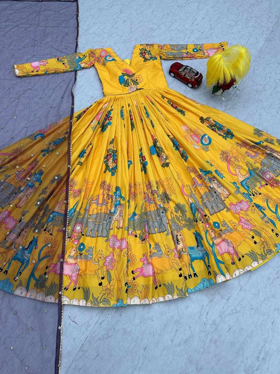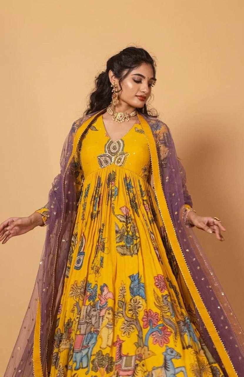 | Name : | PC 474 Yellow New Kalamkari Gown |