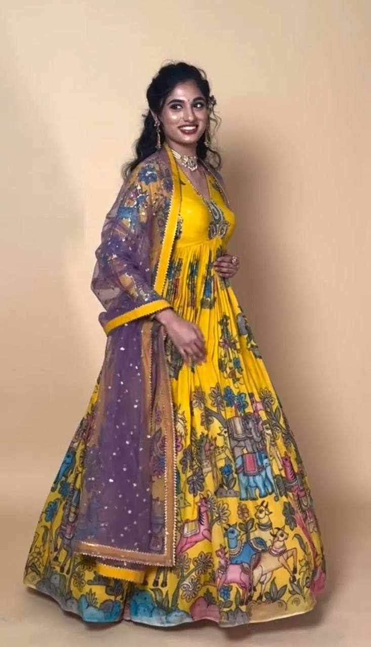 PC 474 Yellow New Kalamkari Gown