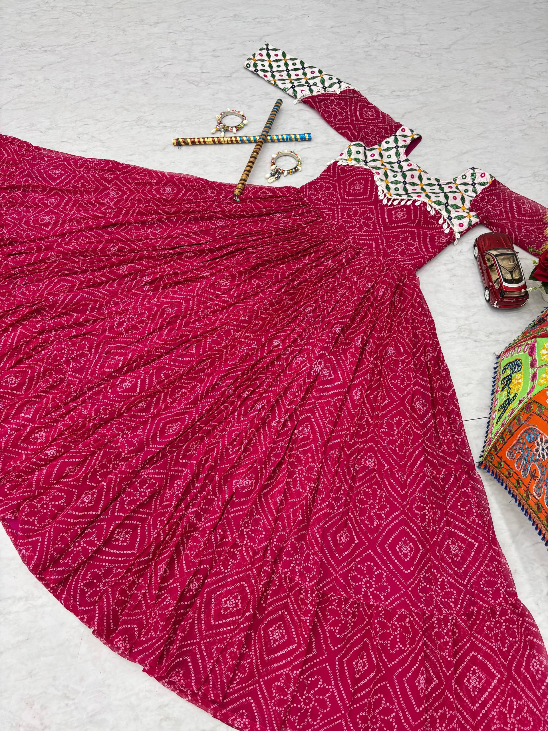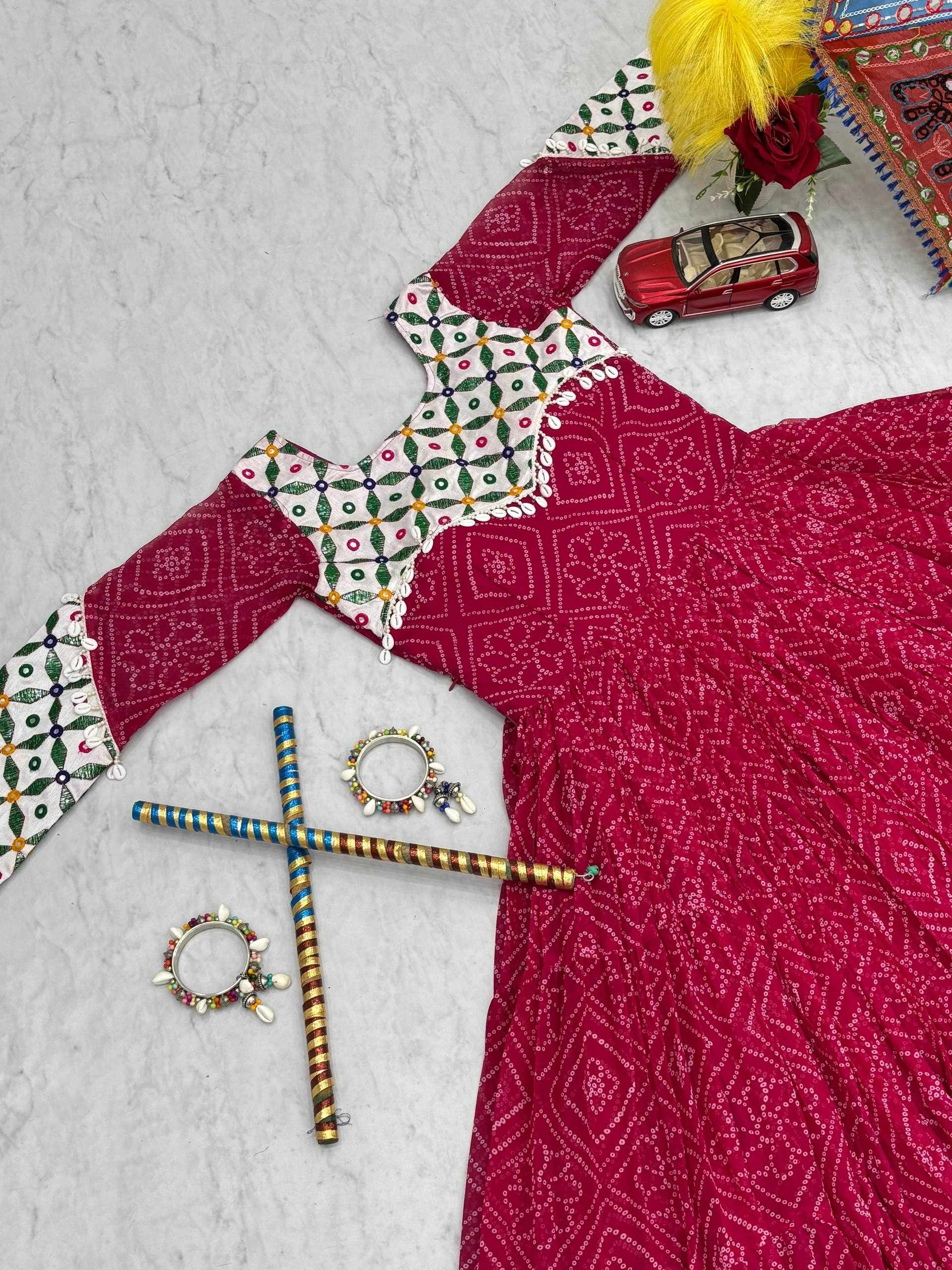 Pc N42 Pink Fox Georgette Gamathi Work with Kodi Lace Navratri Special Gown