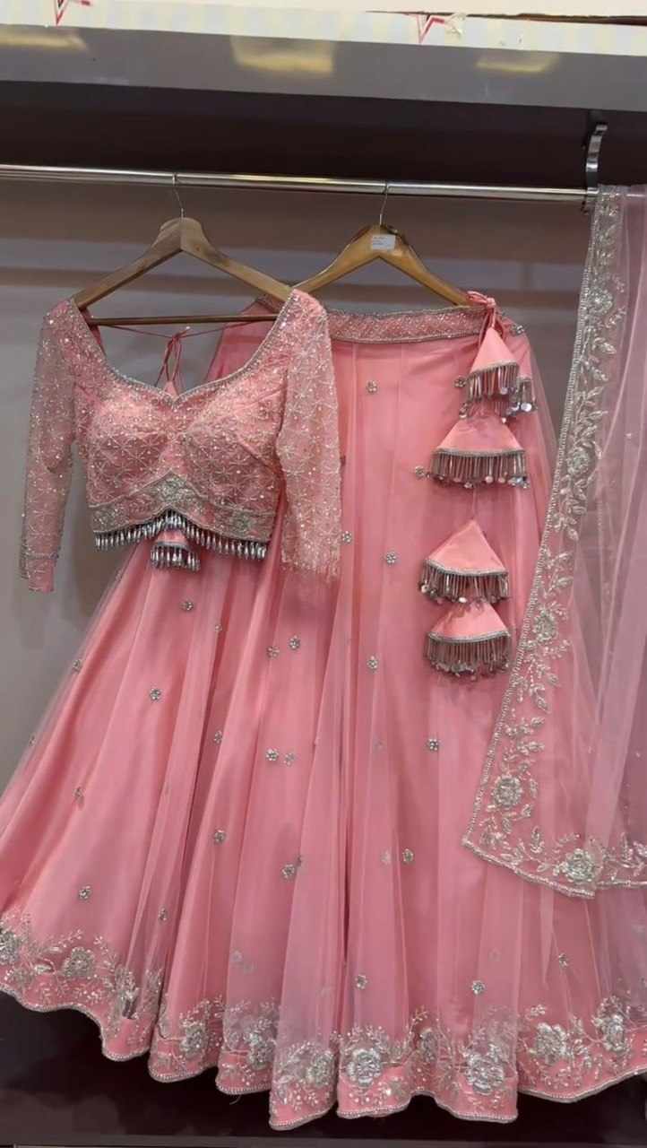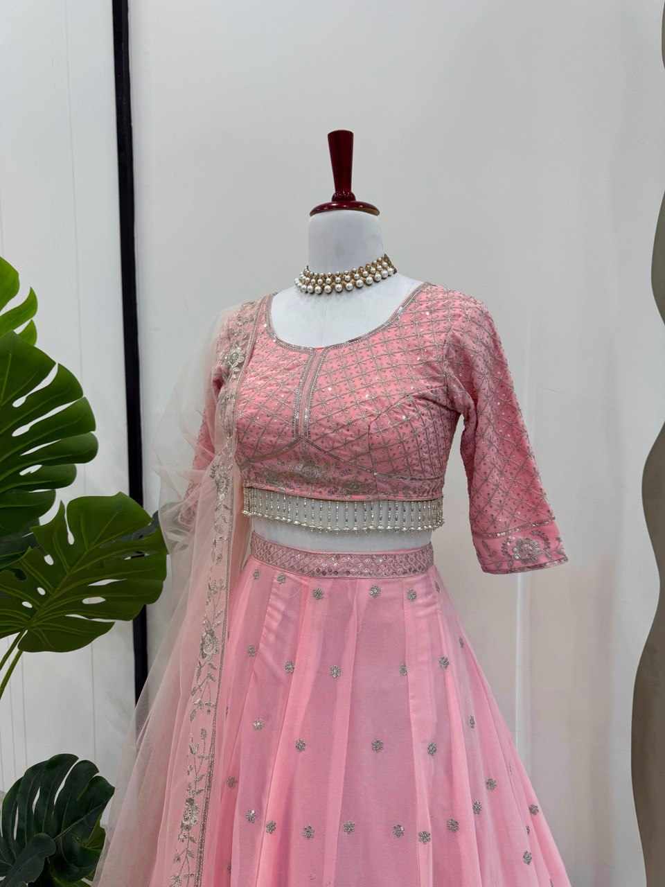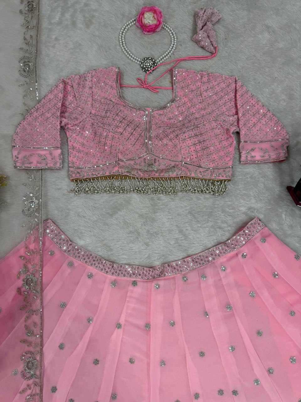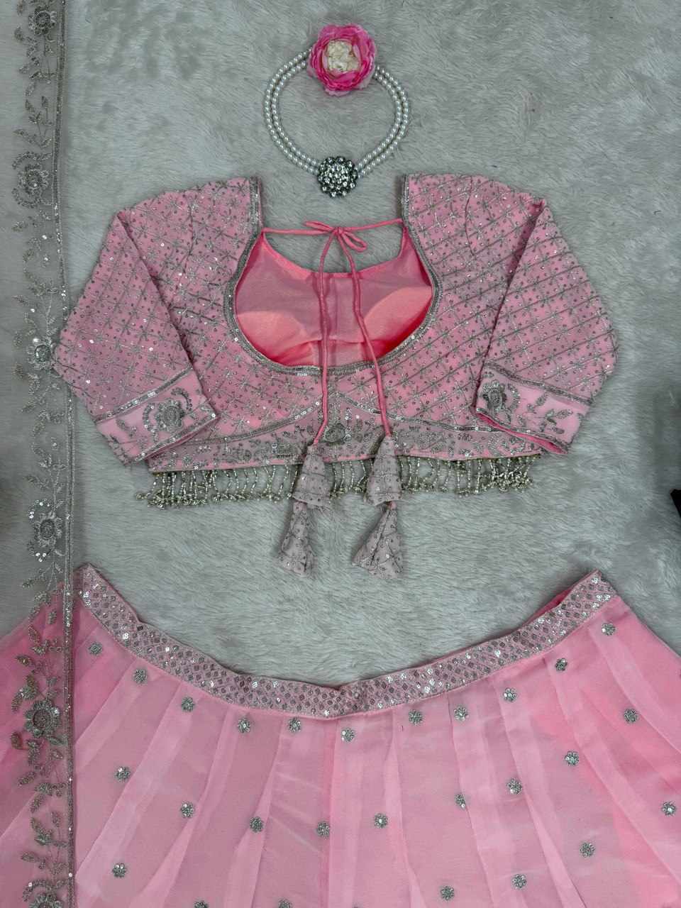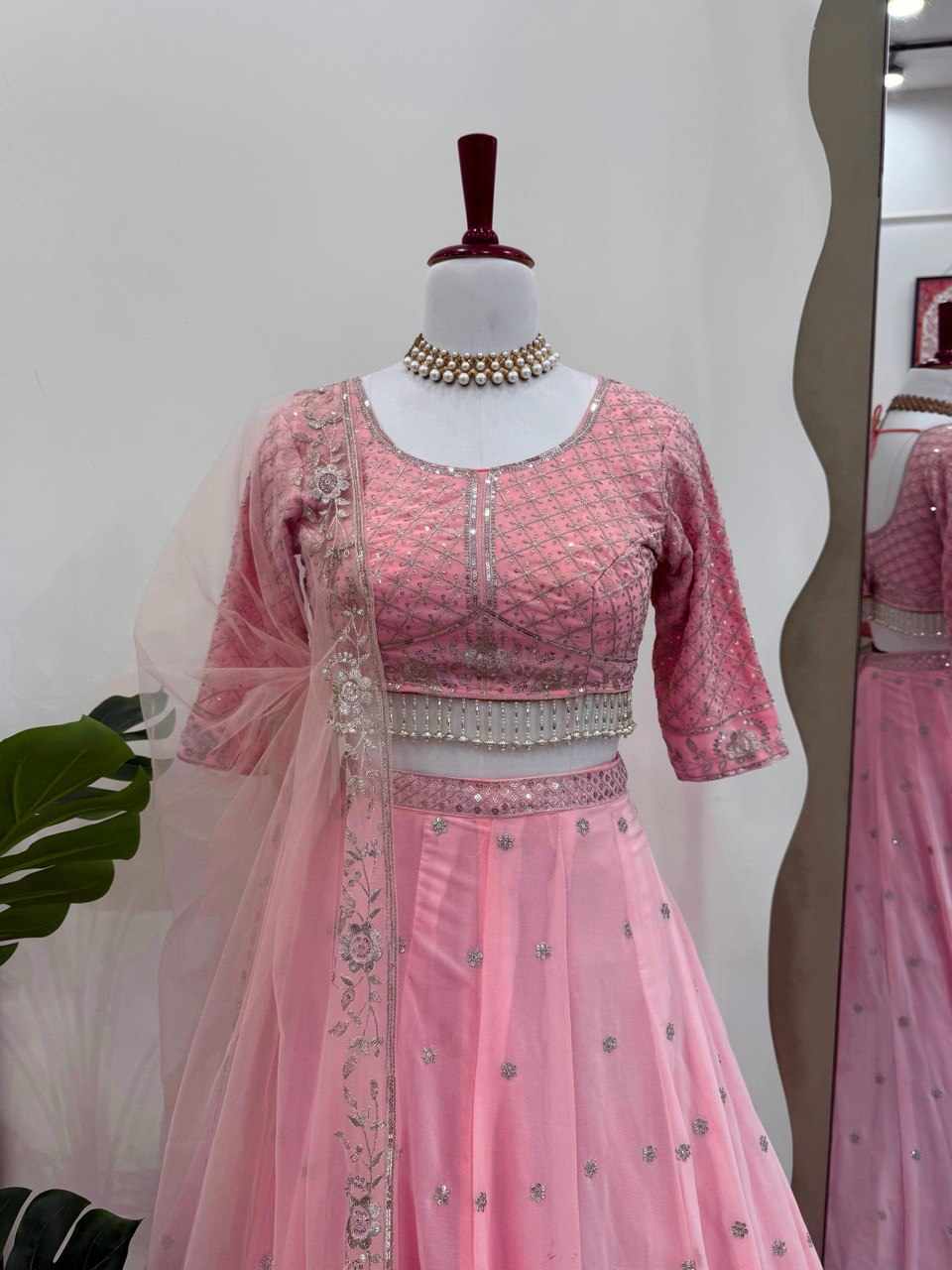 | Name : | QRC 356 Fox Gorgette Pink thread with Sequnce Work Lehengha |