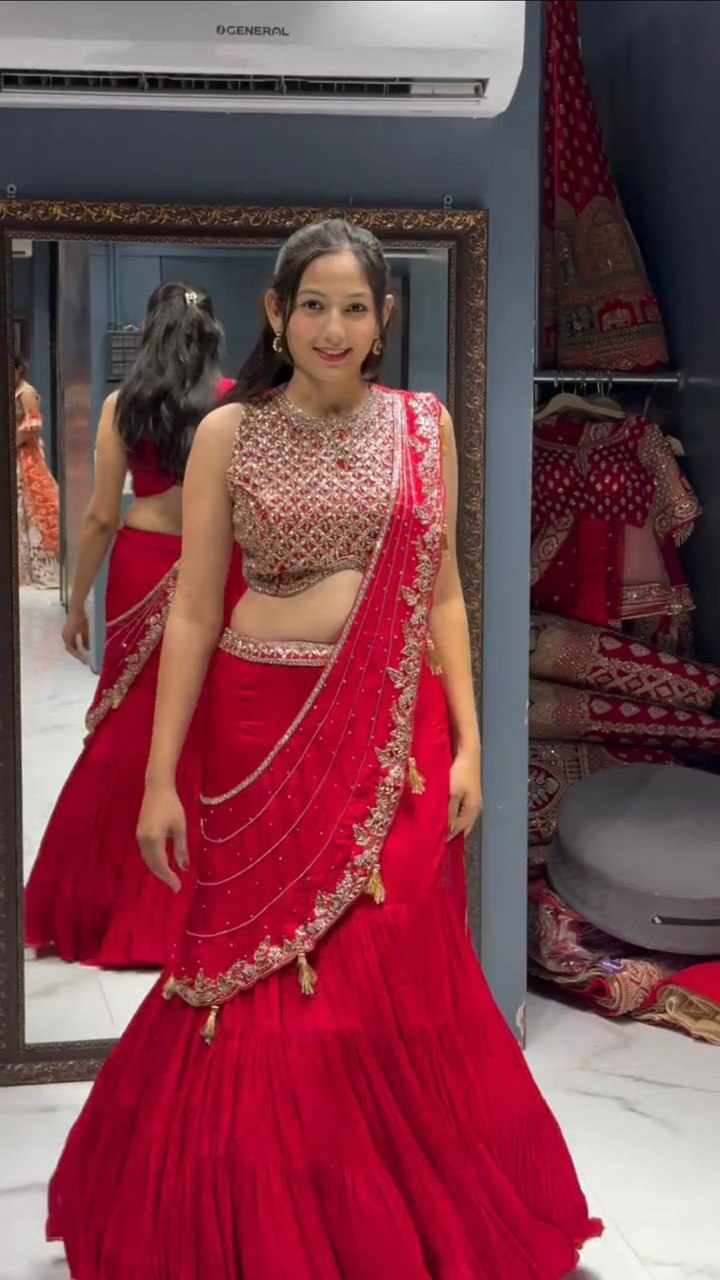 | Name : | QRC 360 Foux Gorgette thread with Sequnce Work Lehengha Saree |