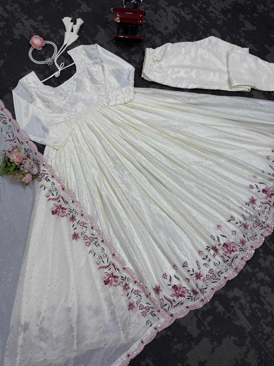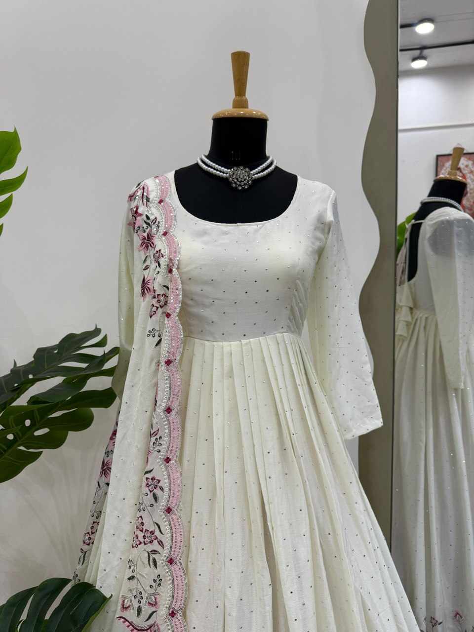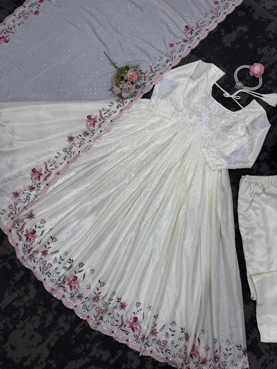 RTC 5873 Chinon silk thread with Sequnce Off White Readymade Dress