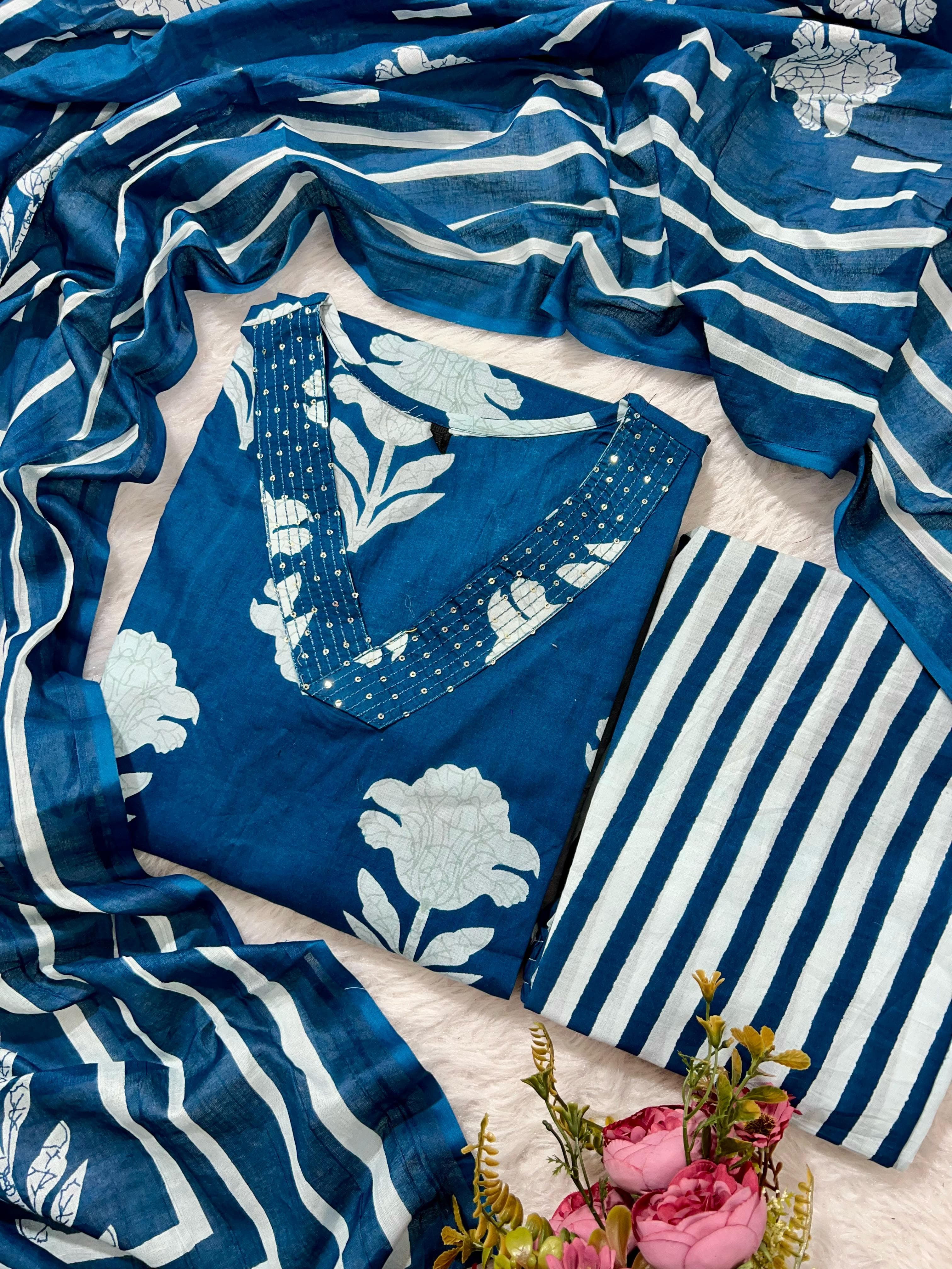 SF 4JU Pure fine Cotton fabric Kurti with Pant with cotton Sequence work Dupatta
